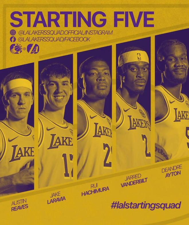 虽然东契奇、詹姆斯、斯马特等人缺席,但这场比赛多位湖人新援迎来首秀,其中最受关注的莫过于艾顿和拉拉维亚: